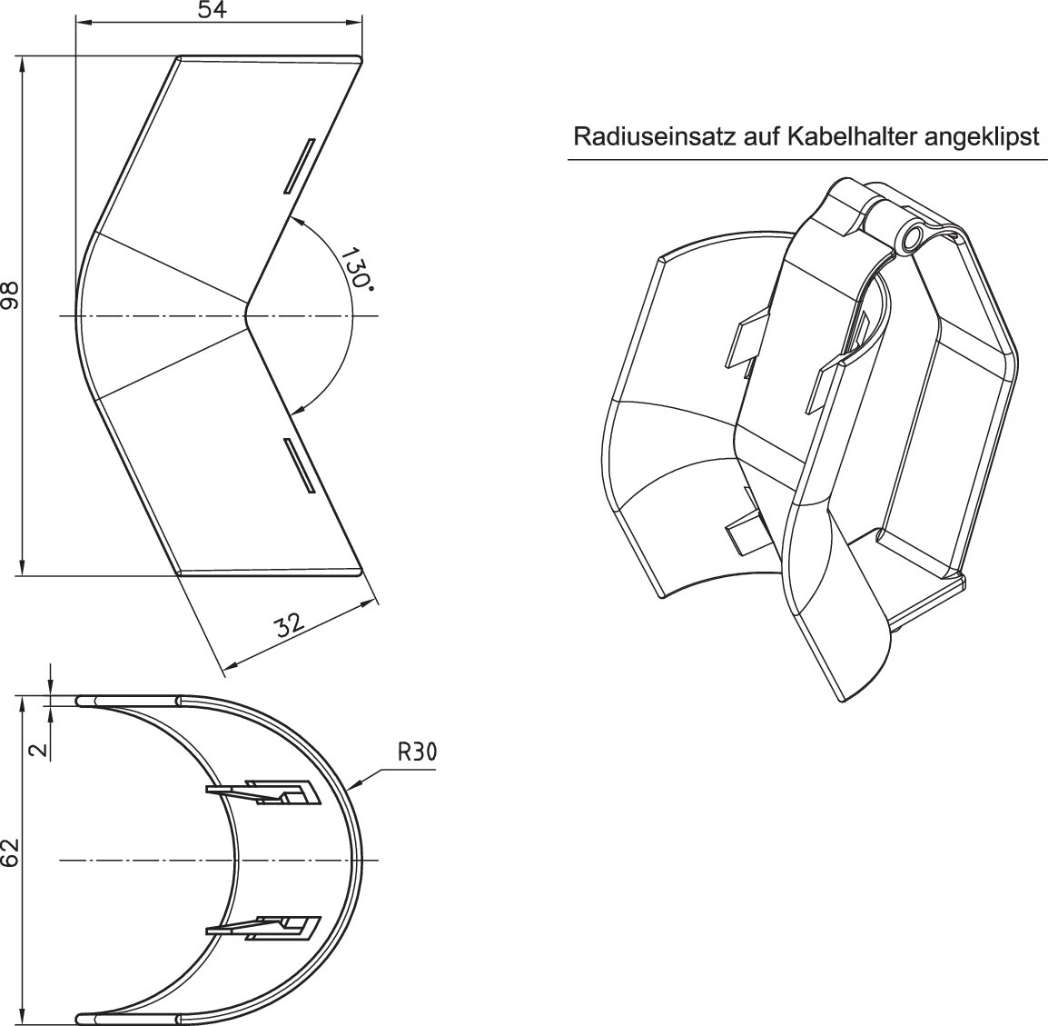 Clip-on radius for cable holders