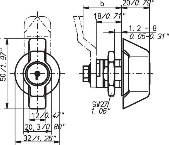 - Please determine the required dimension "b" of the crank to select the suitable latch.