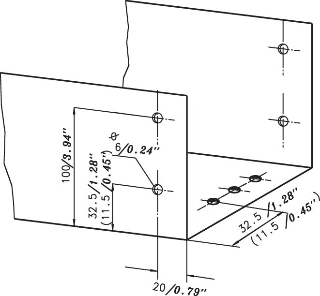 Fix hole distances from front side: 20 mm