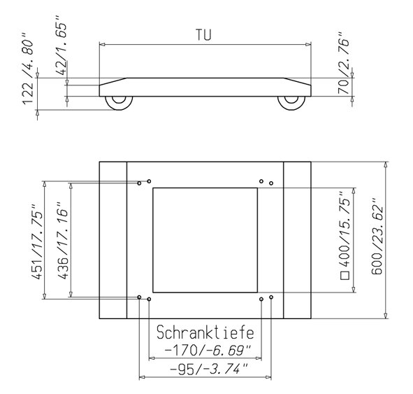 Suitable for 600 mm wide cabinets, 600 and 800 mm deep.