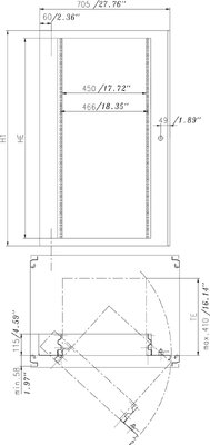 - The attachment bars for swing-frames need to be selected to fit the width of the cabinet. For 0-165° the swing support set 165° needs to be selected (please order separately under part no. 0318-7080-18-07). The following fluorescent lamp can be mounted in front of the swivel frames. Other locking bolts on request.
