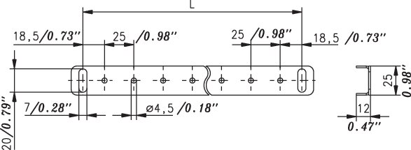 With Ø 4.5 mm holes every 25 mm for DIN 7500 M5x12 or DIN 7516 M5x10 bolts