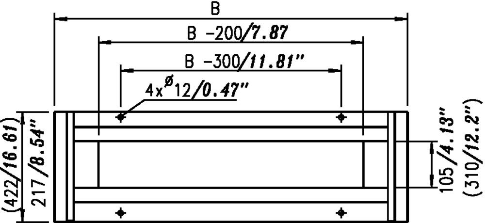 Mounting plate: Galvanized sheet steel, adjustable to depth (if D=650 mm with 2 mounting plates)