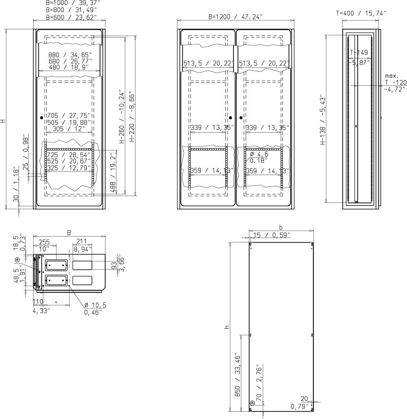 - Cabinet complete with hinged front door, 4 bottom cable entry plates and one key
