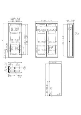Protective ground connection according to DIN EN 61439-1, M8x20 mm bolts in top, bottom, door and side panel. Mounting plate with drilled holes.