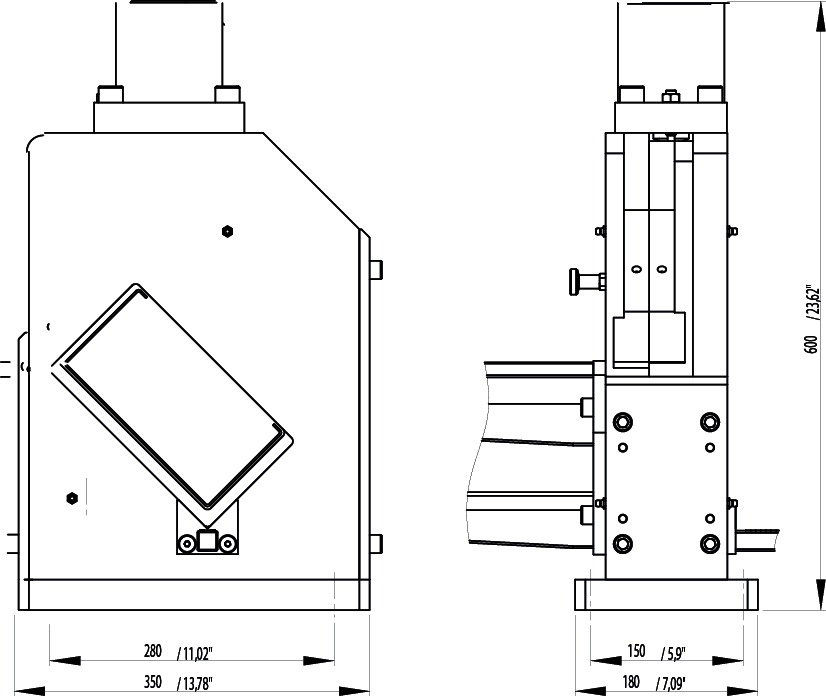 - Cable duct shears with hydraulic cylinder and 1 m / 39.37” length stop for cutting